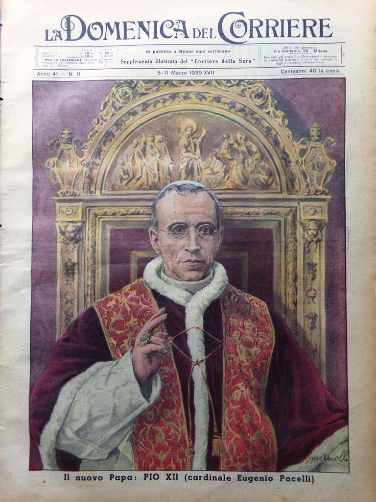 La Domenica del Corriere 11 Marzo 1939 Pio XII Pacelli Conclave Tomba Leopardi