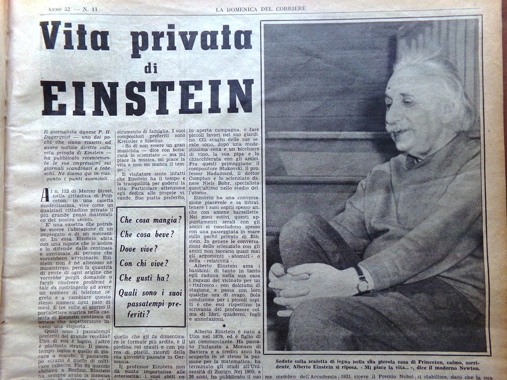 La Domenica del Corriere 12 Marzo 1950 Albert Einstein Giacosa Bergman Canarini