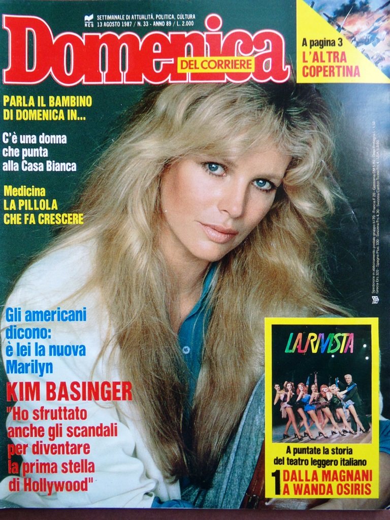 La Domenica del Corriere 13 Agosto 1987 Kim Basinger Liedholm Protezione Civile