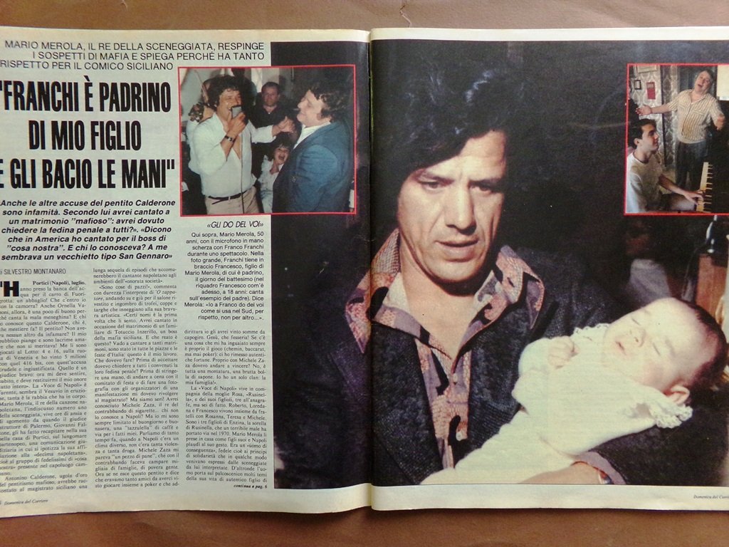 Mario Merola respinge i sospetti di mafia e spiega perché ha tanto rispetto per il comico siciliano: "Franco Franchi è padrino di mio figlio e gli bacio le mani".