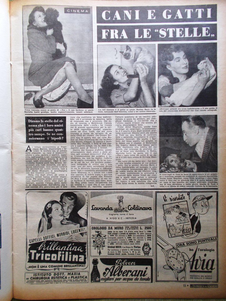 Cani e gatti fra le "stelle": Mariella Lotti, Marina Berti, Totò, Gina Lollobrigida