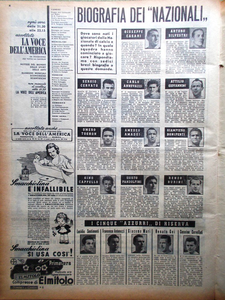 La Domenica del Corriere 13 Maggio 1951 Giuliano Nazionale di Calcio Caravaggio