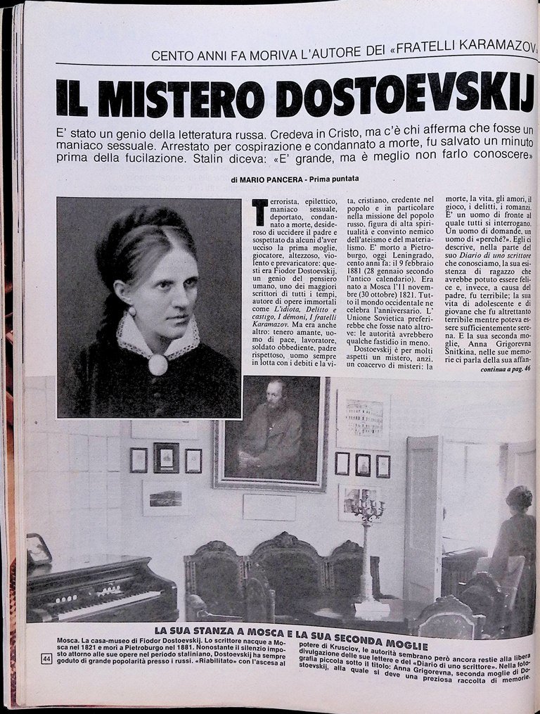 Il mistero Dostoevskij, il centenario della morte dell'autore dei "Fratelli Karamazov"