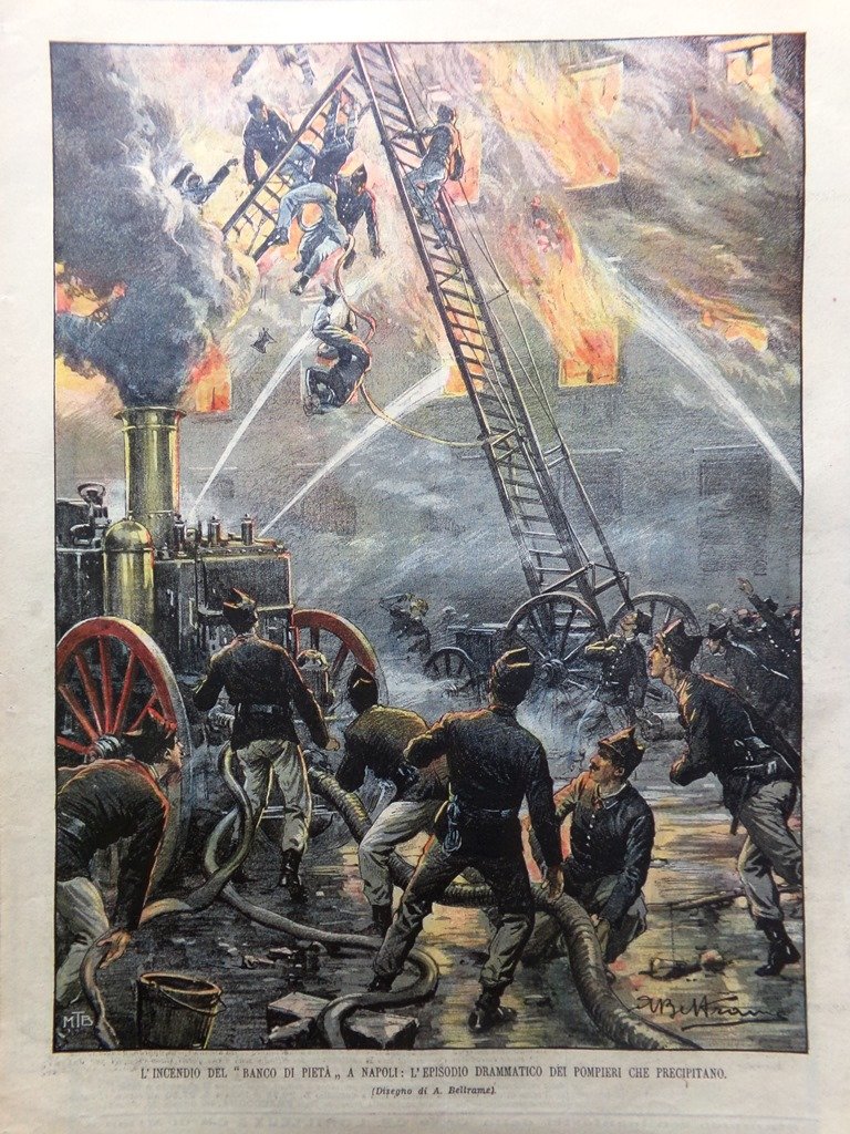L'incendio del "Banco di pietà" a Napoli: l'episodio drammatico dei pompieri che precipitano (Achille Beltrame)