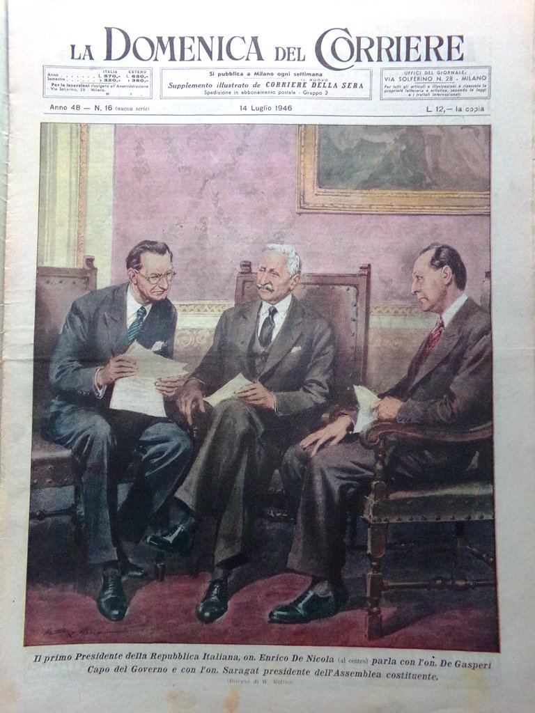 La Domenica del Corriere 14 Luglio 1946 De Nicola Mondine Ciclismo Negri Gasperi