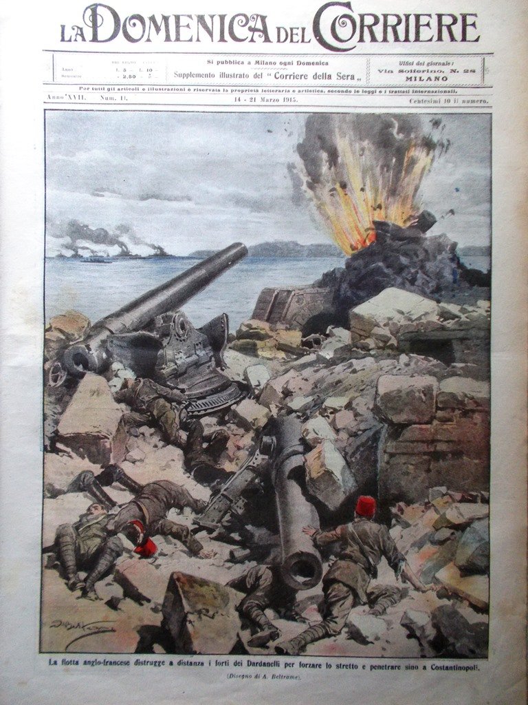 La Domenica del Corriere 14 Marzo 1915 WW1 Dardanelli Cocullo Helgoland Messina