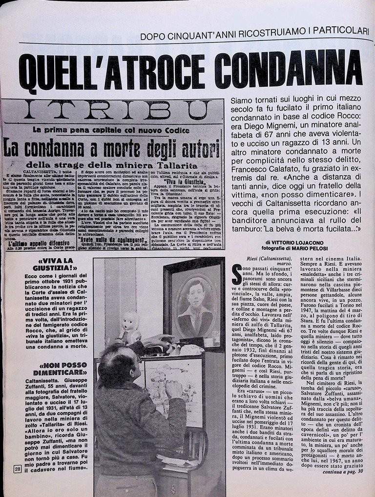 Ricostruita dopo 50 anni l'esecuzione di un minatore nella miniera Tallarita in Sicilia