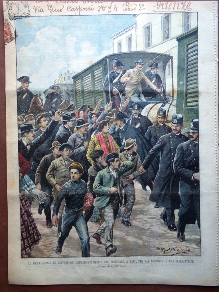 La folla assale le vetture dei condannati reduci dal tribunale, a Bari, per far giustizia di una malfattrice (Achille Beltrame)