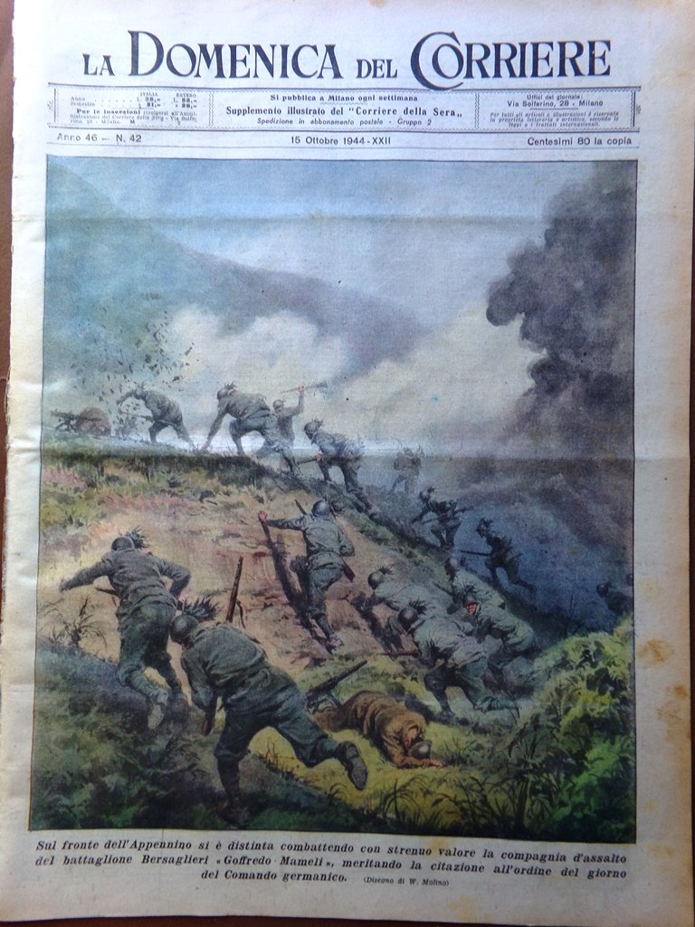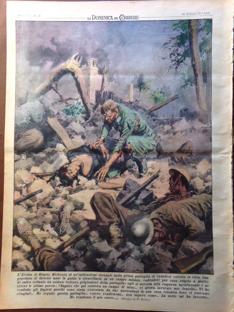 La Domenica del Corriere 15 Ottobre 1944 WW2 Bersaglieri Mimetismo Eroina Rimini