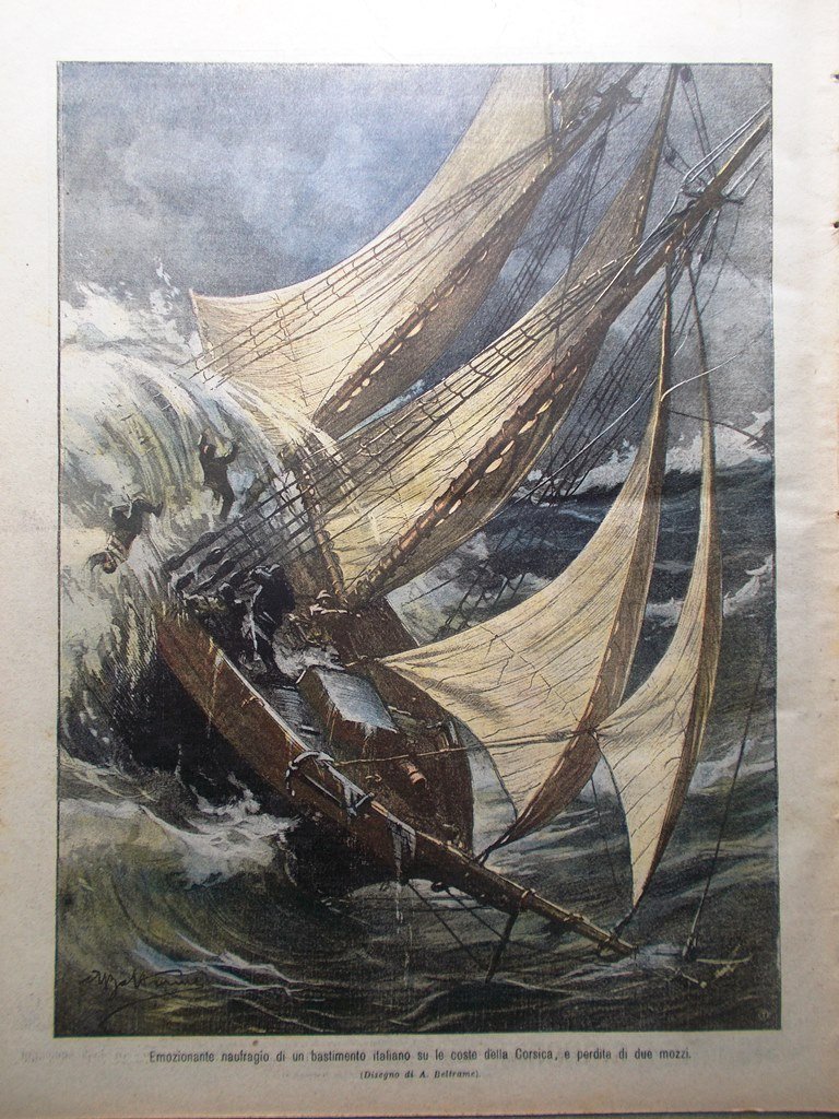 Emozionante naufragio di un bastimento italiano sulle coste della Corsica, e perdita di due mozzi (Achille Beltrame)
