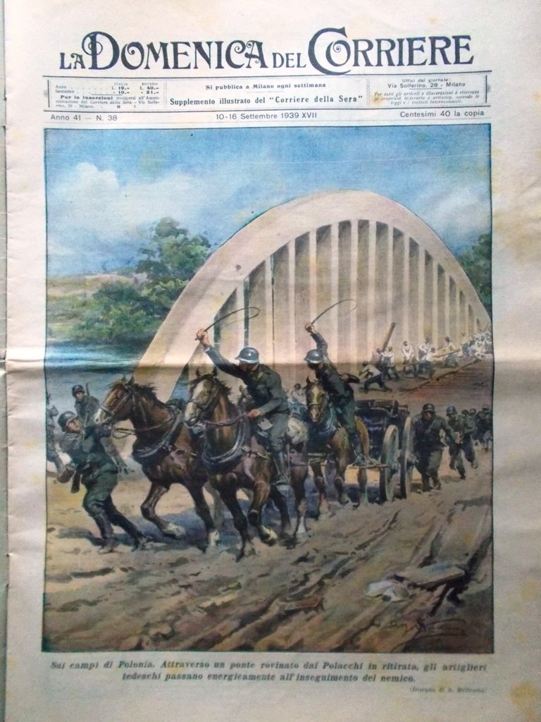 La Domenica del Corriere 16 Settembre 1939 WW2 Guerra in Polonia Londra Leonardo