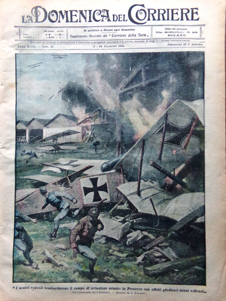 "I nostri velivoli bombardarono il campo di aviazione nemico in Prosecco con effetti giudicati assai efficaci" (Achille Beltrame)