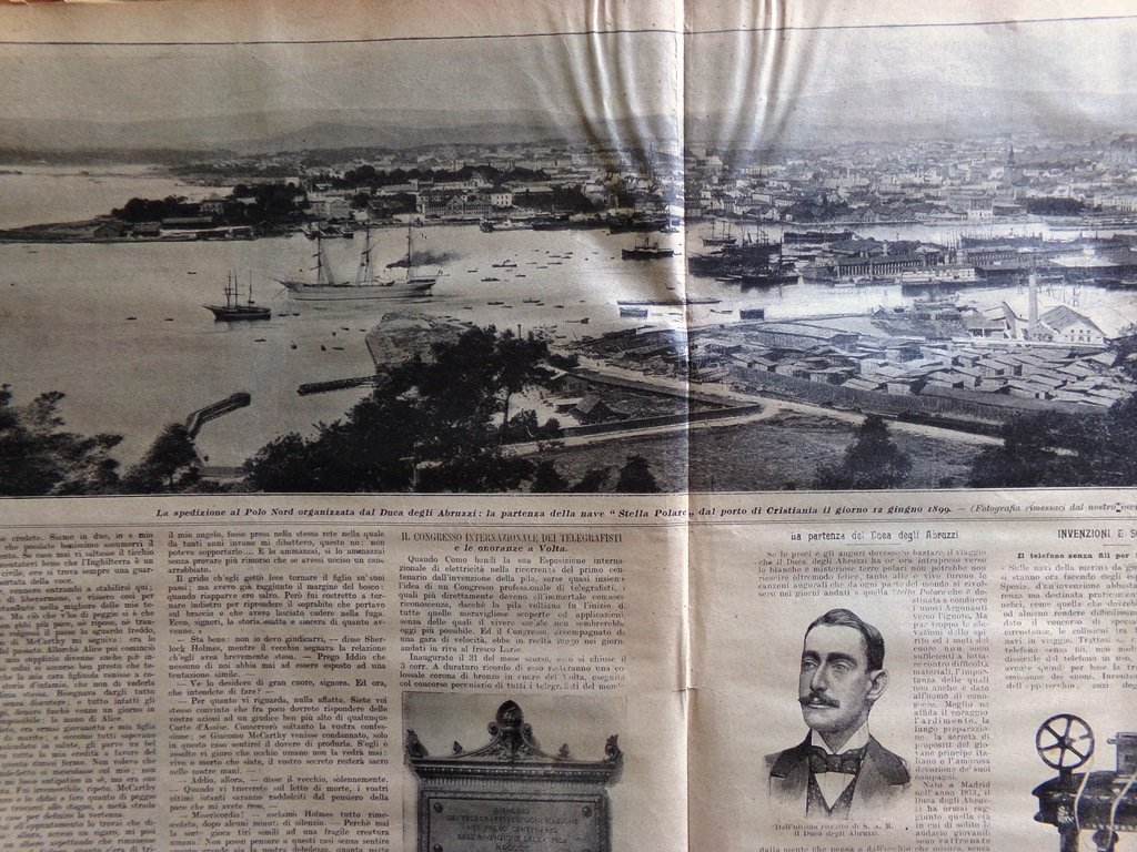 La spedizione del duca degli Abruzzi al Polo Nord: la partenza della "Stella Polare" dal porto di Cristiania (fotografia a 2 pagine)