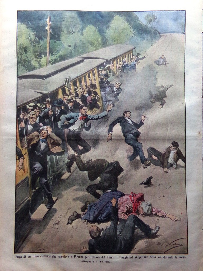 LA DOMENICA DEL CORRIERE Rivista Originale del 19 Luglio 1914 Anno 16 nr. 29 pagine: 16 dimensioni: 38 x 28 cm IN PRIMA PAGINA: Leonessa che fugge dalla gabbia aperta in alto durante una rappresentazione, in Borgogna, e spaventa un intero paese (Achille Beltrame) NELL'ULTIMA PAGINA: Fuga di un tram elettrico che scendeva a Firenze per rottura del freno: i viaggiatori si gettano nella via durante la corsa (Achille Beltrame) ALL'INTERNO: Il tempio medievale di Dolianova Le invasioni dell'Italia: quanti eserciti scesero dall'Alpi L'ing. Ulivi fa scoppiare a distanza una mina La guerra e l'incoscienza messicana Nuova clinica della Università di Pisa La coltivazione del tabacco da sigarette in Italia La marcia del femminismo CONDIZIONI DELLA RIVISTA: BUONE, NORMALI SEGNI DEL TEMPO, SOVRACOPERTINE MANCANTI NOTE PARTICOLARI: NESSUNA