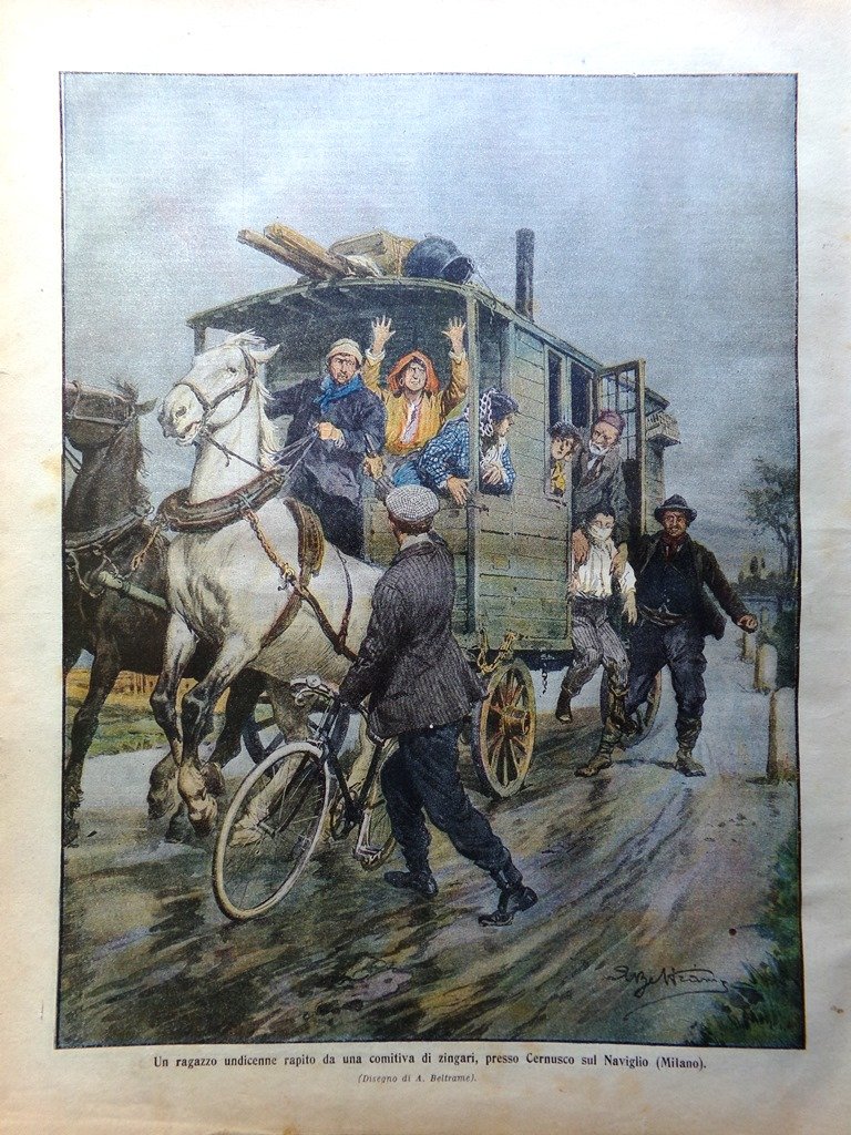 Un ragazzo undicenne rapito da una comitiva di zingari presso Cernusco sul Naviglio (Milano) (Achille Beltrame)