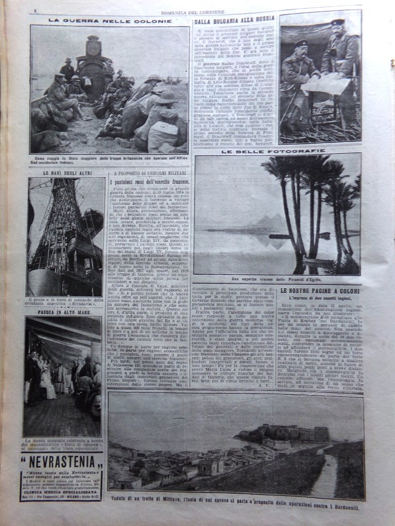 La Domenica del Corriere 2 Maggio 1915 WW1 Natale Roma Colonie Lago Scanno Russi
