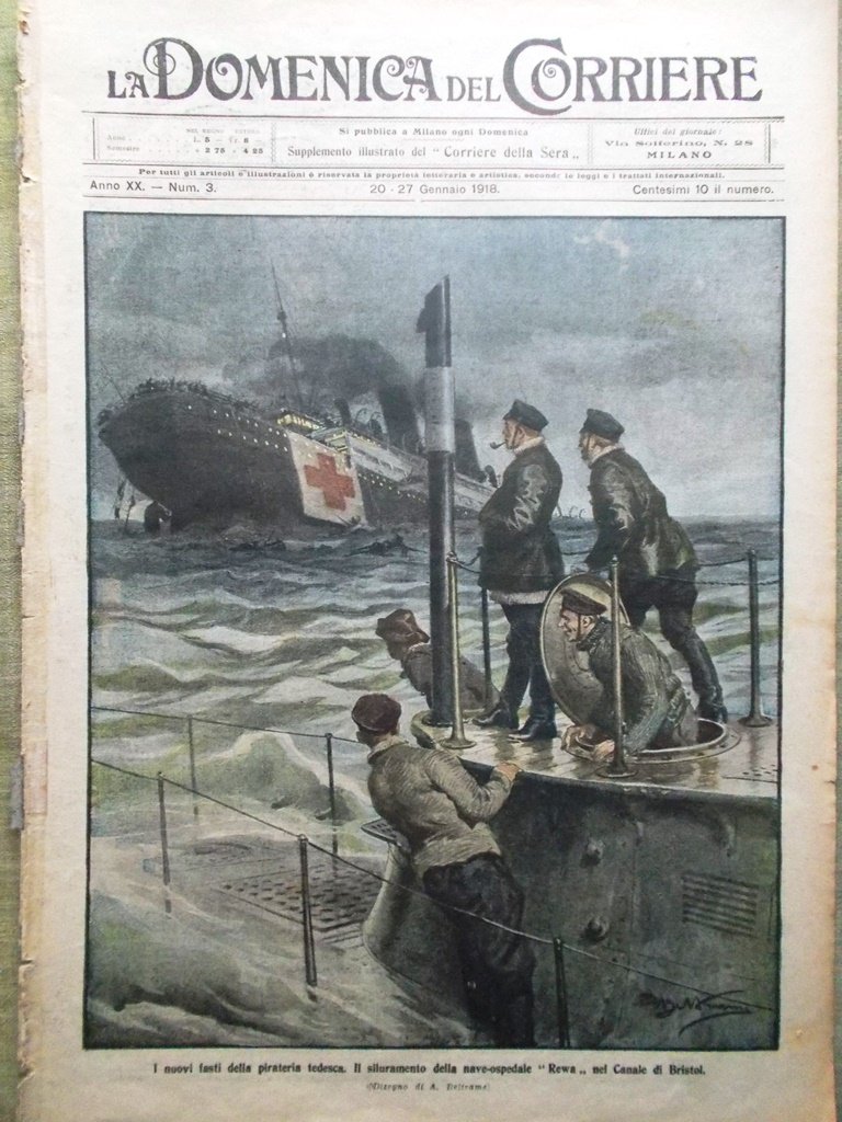 I nuovi fasti della pirateria tedesca. Il siluramento della nave-ospedale "Rewa" nel Canale di Bristol (Achille Beltrame)