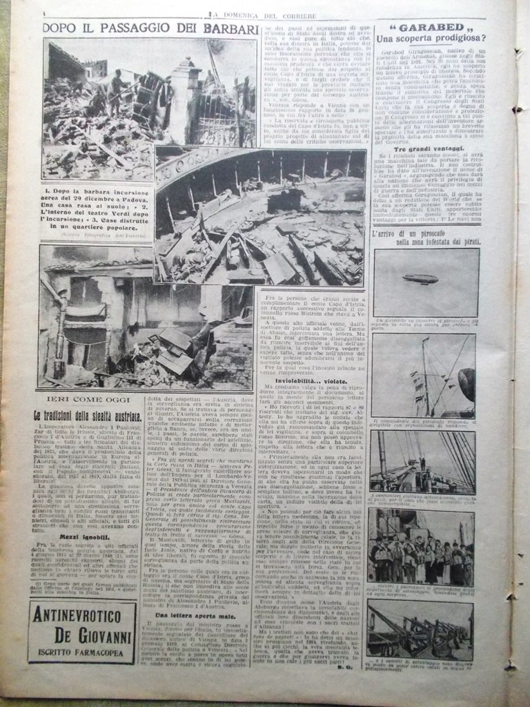 La Domenica del Corriere 20 Gennaio 1918 WW1 Bombe Padova Adamello Rewa Bristol