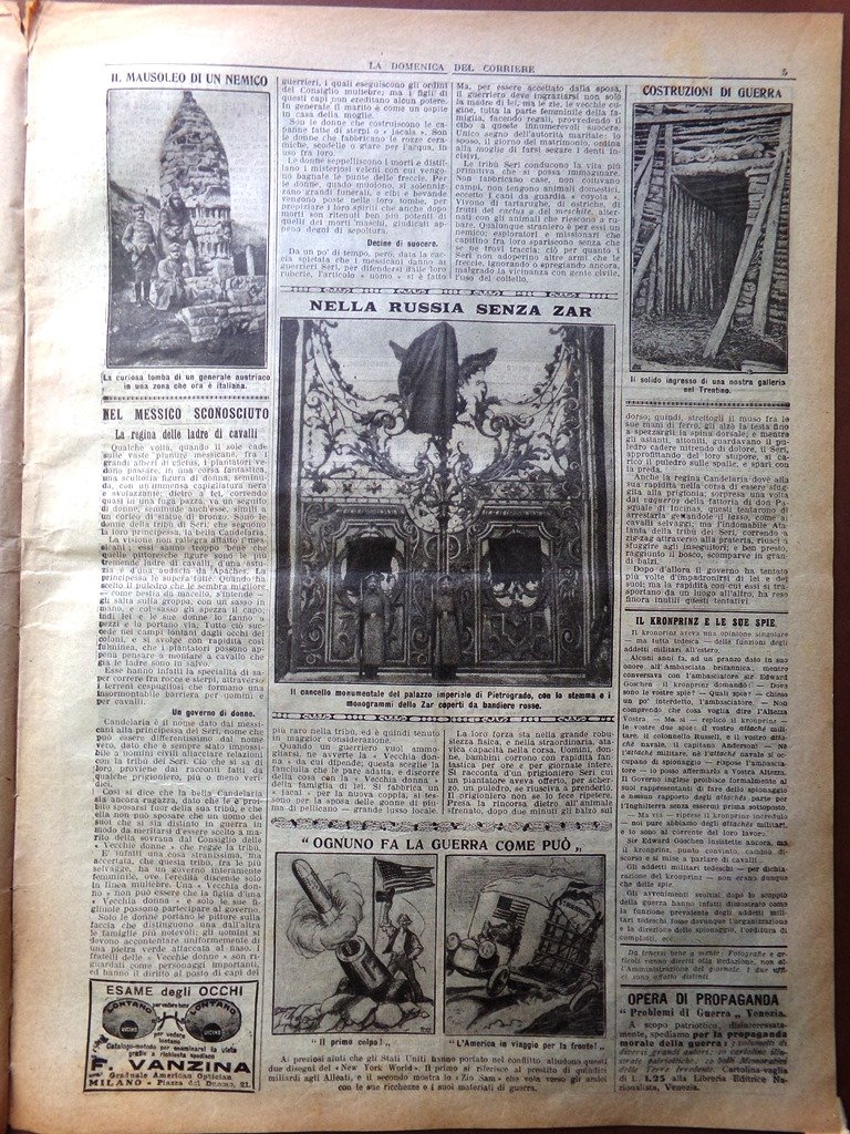 La Domenica del Corriere 20 Maggio 1917 WW1 Russia Messico Cina Rovere Trentino