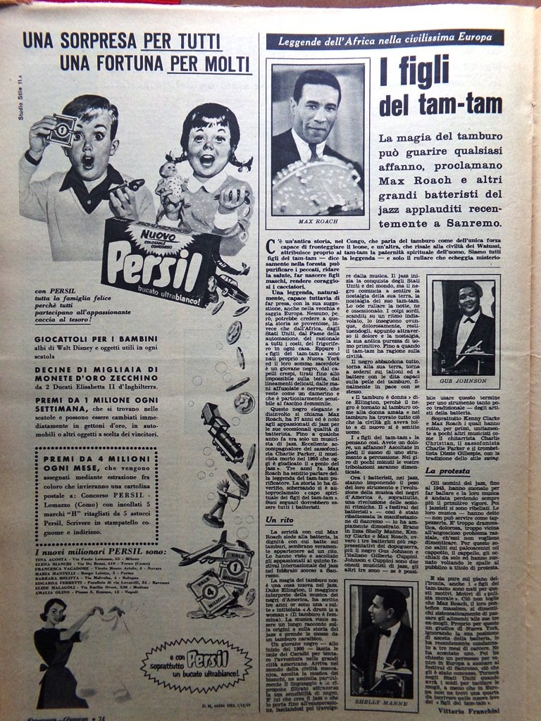 La Domenica del Corriere 20 Marzo 1960 Warren Colombo Viani Batteria Jazz Ekberg