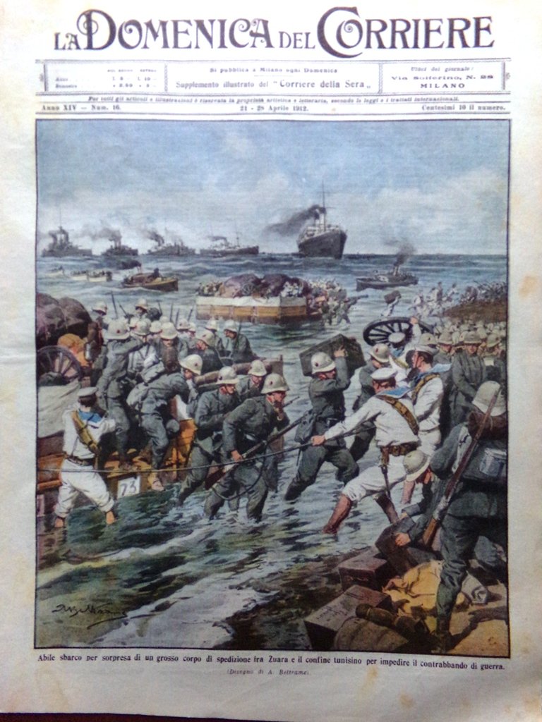 Abile sbarco per sorpresa di un grosso corpo di spedizione fra Zuara e il confine tunisino per impedire il contrabbando di guerra (Achille Beltrame)