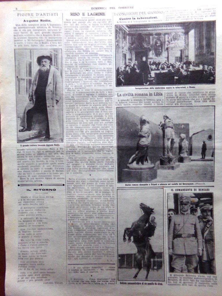 La Domenica del Corriere 21 aprile 1912 Rodin Tubercolosi Istruzione Rodgers Po