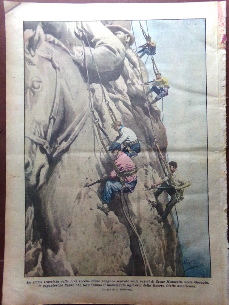 La storia tracciata nella viva roccia. Come vengono scavate sulle pareti di Stone Mountain, nella Georgia, le gigantesche figure che formeranno il monumento agli eroi della Guerra Civile americana (Achille Beltrame)