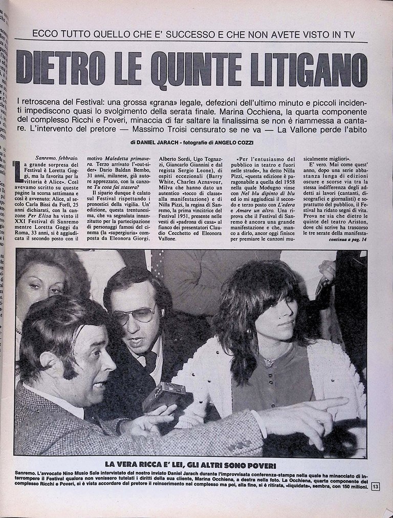Marina Occhiena, la quarta componente del complesso Ricchi e Poveri, minaccia di far saltare la finalissima