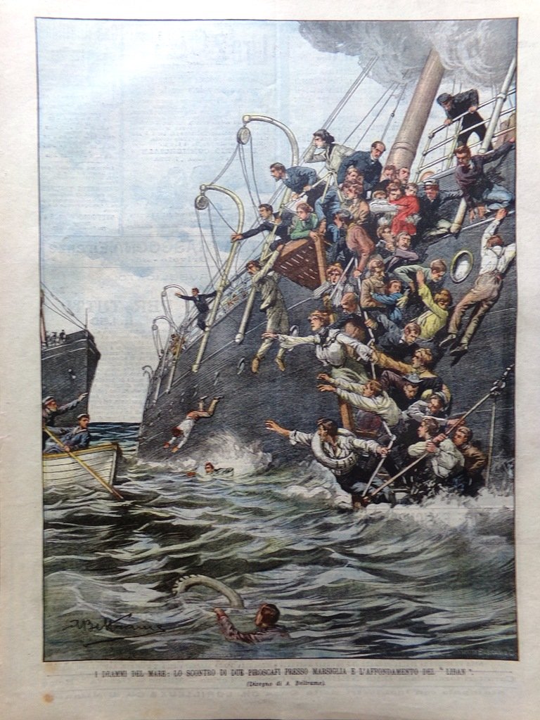I drammi del mare: lo scontro di due piroscafi presso Marsiglia e l'affondamento del "Liban" (Achille Beltrame)