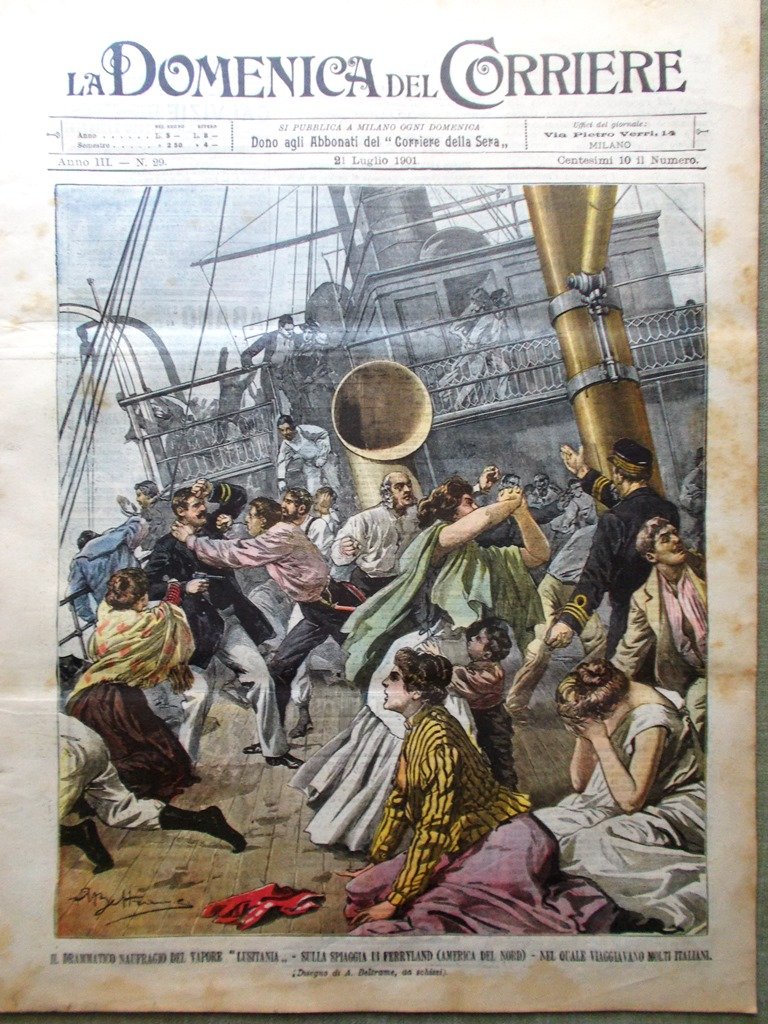La Domenica del Corriere 21 Luglio 1901 Naufragio Lusitania Ferryland Argentina