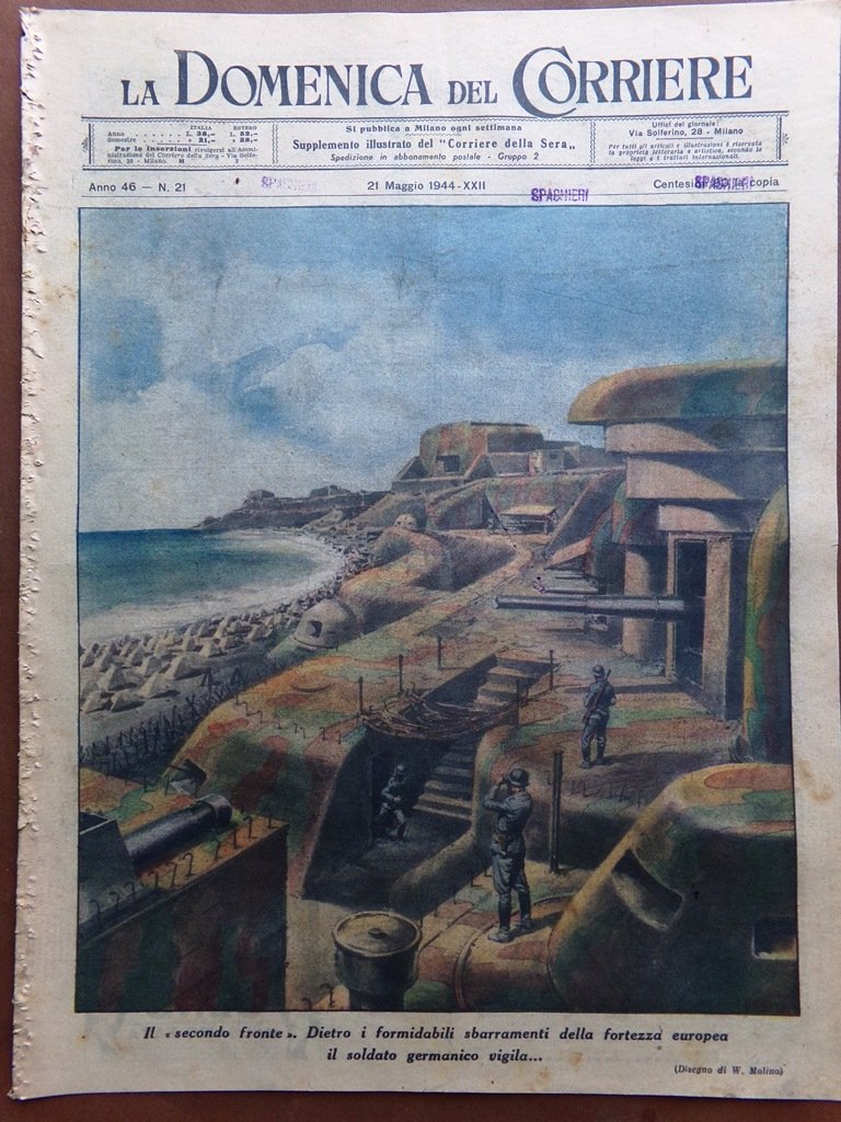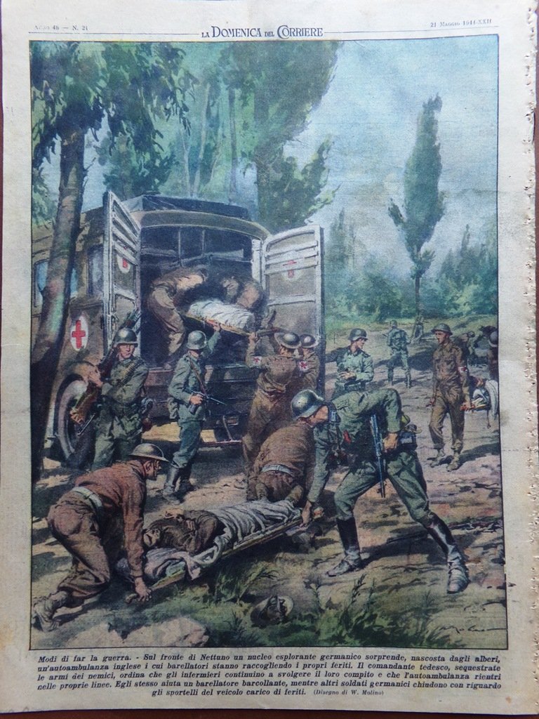 La Domenica del Corriere 21 Maggio 1944 WW2 Fronte Nettuno Tito Ambulanza Radio