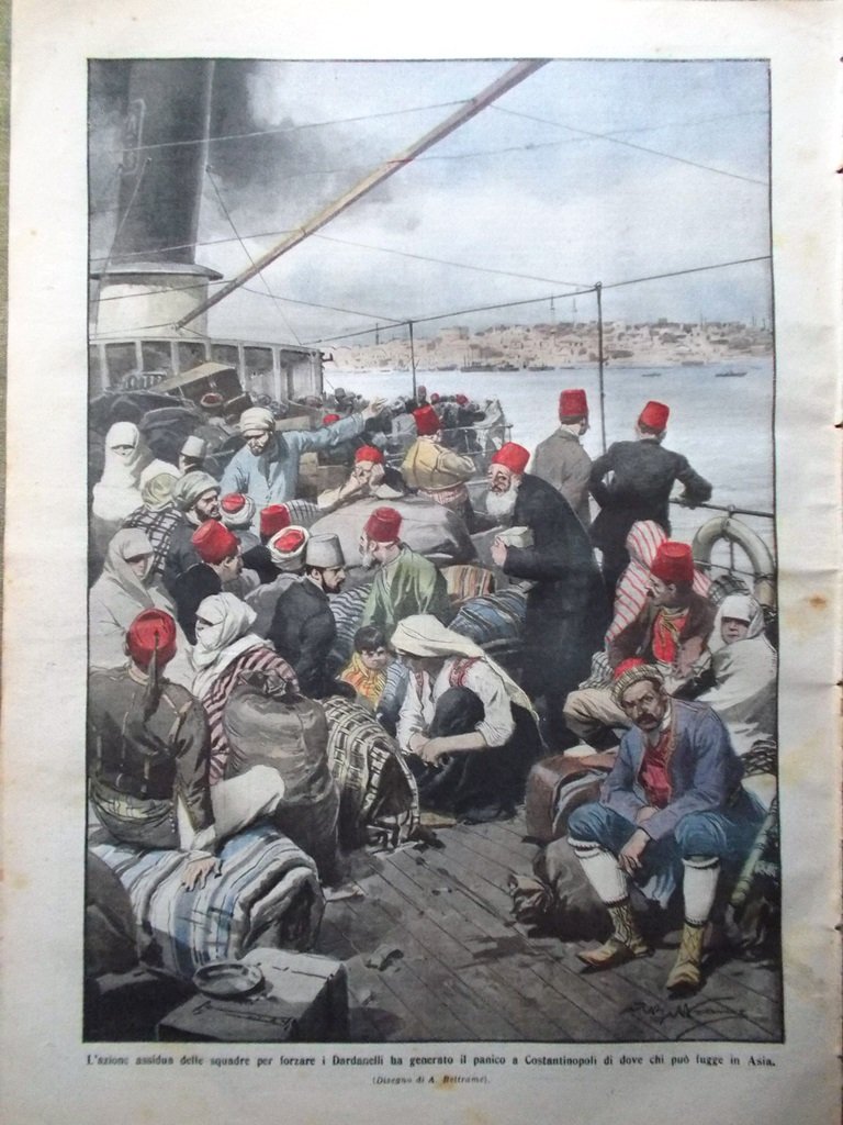 La Domenica del Corriere 21 Marzo 1915 WW1 Dardanelli Spluga Profezia Terremoti