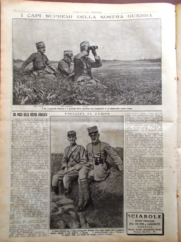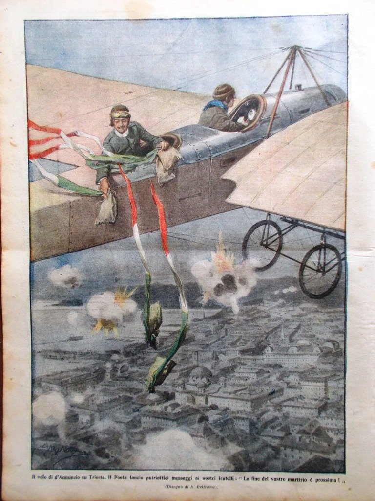 La Domenica del Corriere 22 Agosto 1915 WW1 D'Annunzio su Trieste Fronte Granate
