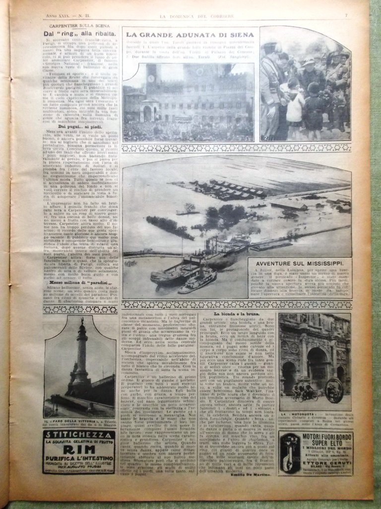 La Domenica del Corriere 22 Maggio 1927 Carpentier Country Siena Trinidad Poste