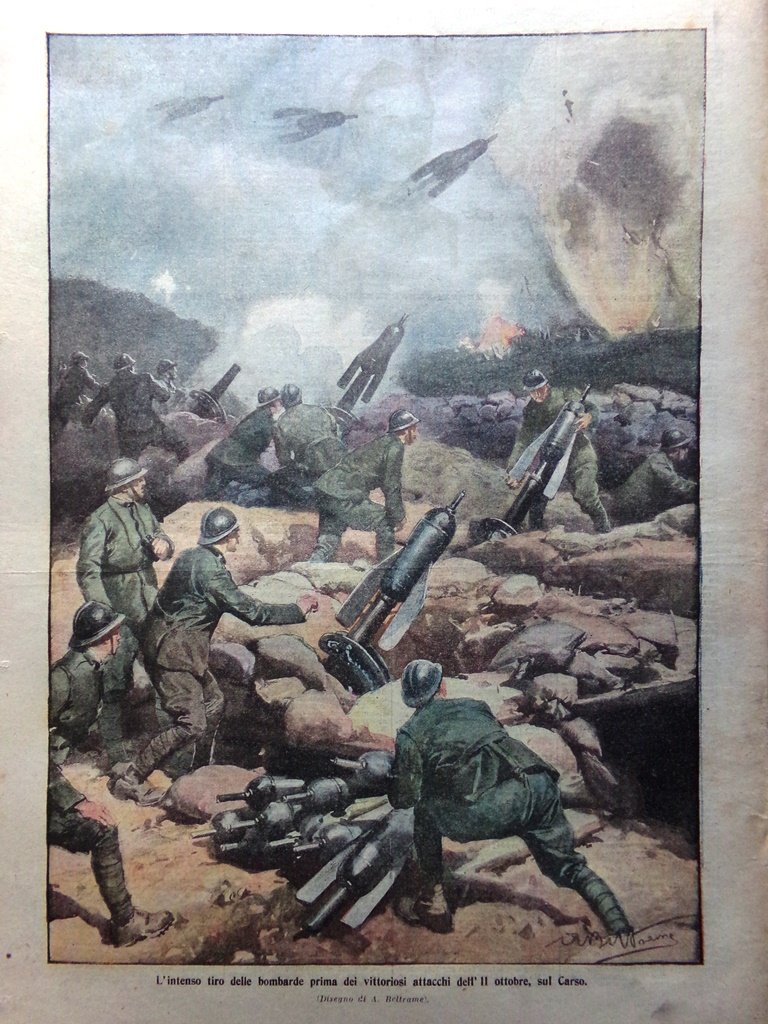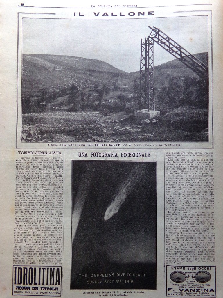 La Domenica del Corriere 22 Ottobre 1916 WW1 Zeppelin Carso Censura Nemico Quota