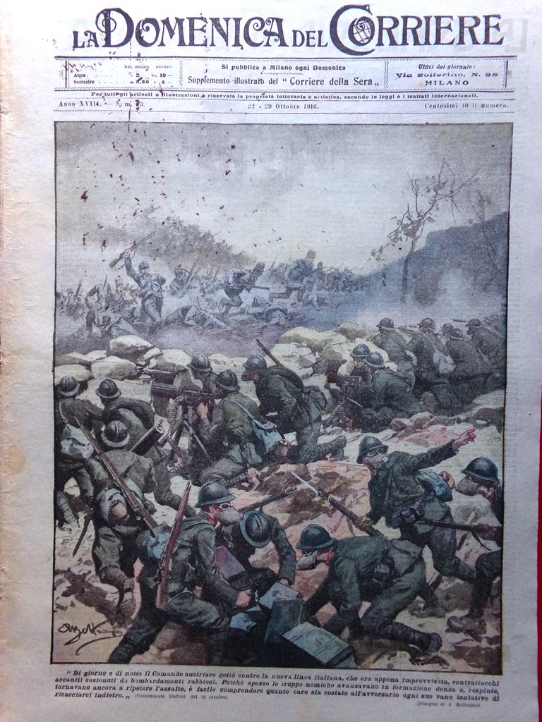 La Domenica del Corriere 22 Ottobre 1916 WW1 Zeppelin Carso Censura Nemico Quota