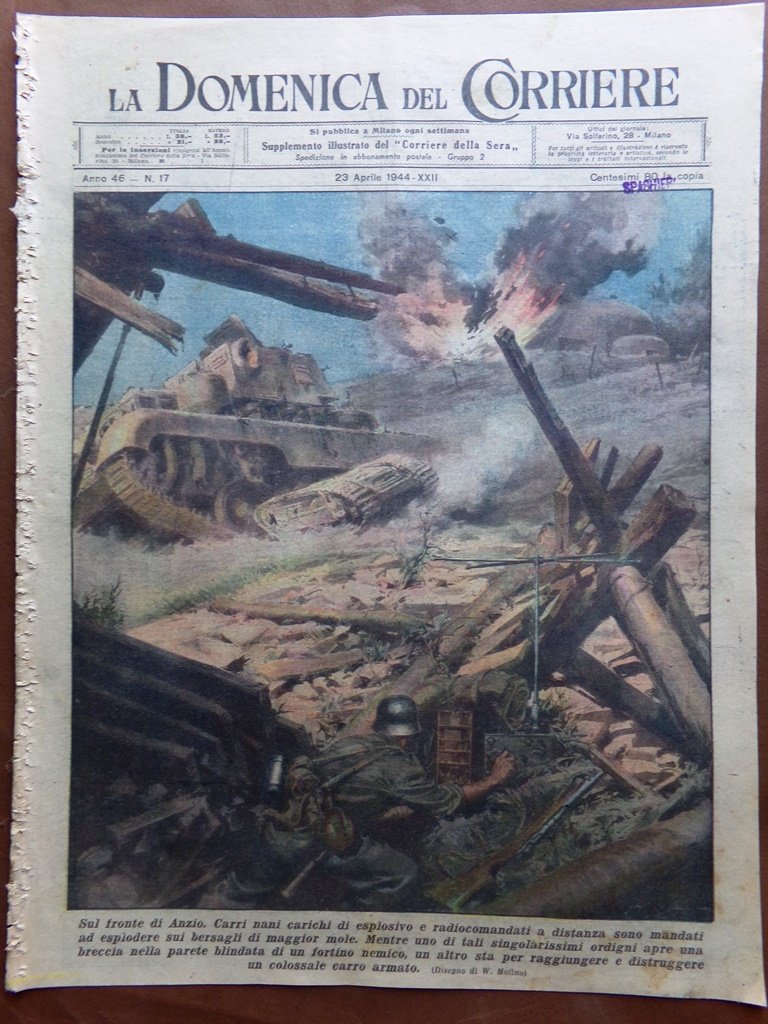 La Domenica del Corriere 23 Aprile 1944 WW2 Lully Cartoni Animati Carri ad Anzio