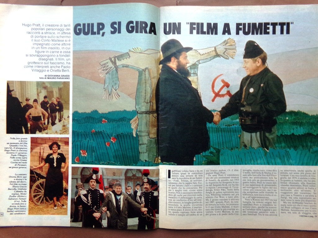 Gulp, si gira un "film a fumetti": Hugo Pratt interprete con Paolo Villaggio del film "Quando c'era lui, caro lei".