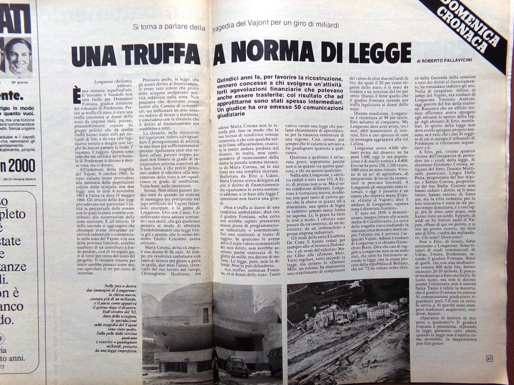 Si torna a parlare della tragedia del Vajont per un giro di miliardi.