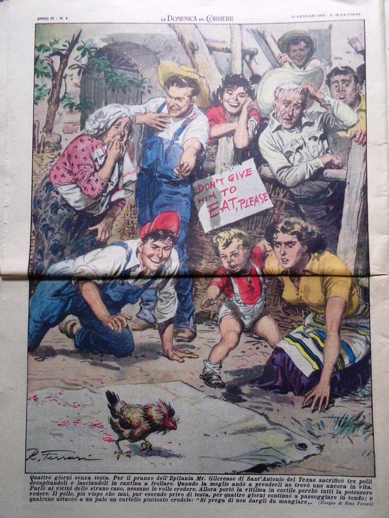 Per il pranzo dell'Epifania Mr. Gilcrease di Sant'Antonio del Texas sacrificò tre polli decapitandoli e lasciandoli in cantina a frollare, ma la moglie ne trovò uno ancora in vita. Il pollo privo di testa sopravvisse per altri quattro giorni (Rino Ferrari)