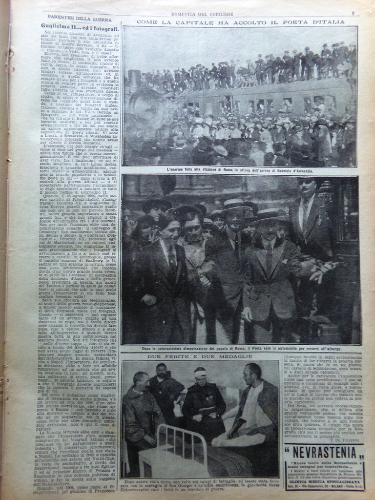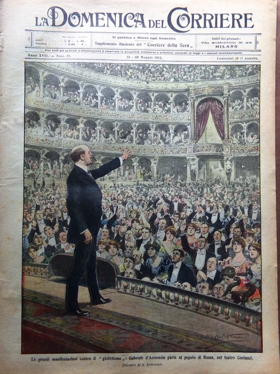 La Domenica del Corriere 23 Maggio 1915 WW1 Lusitania D'Annunzio Inglesi Nevskij