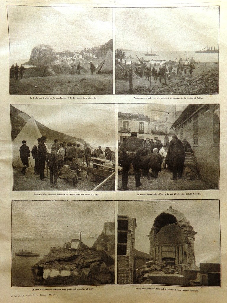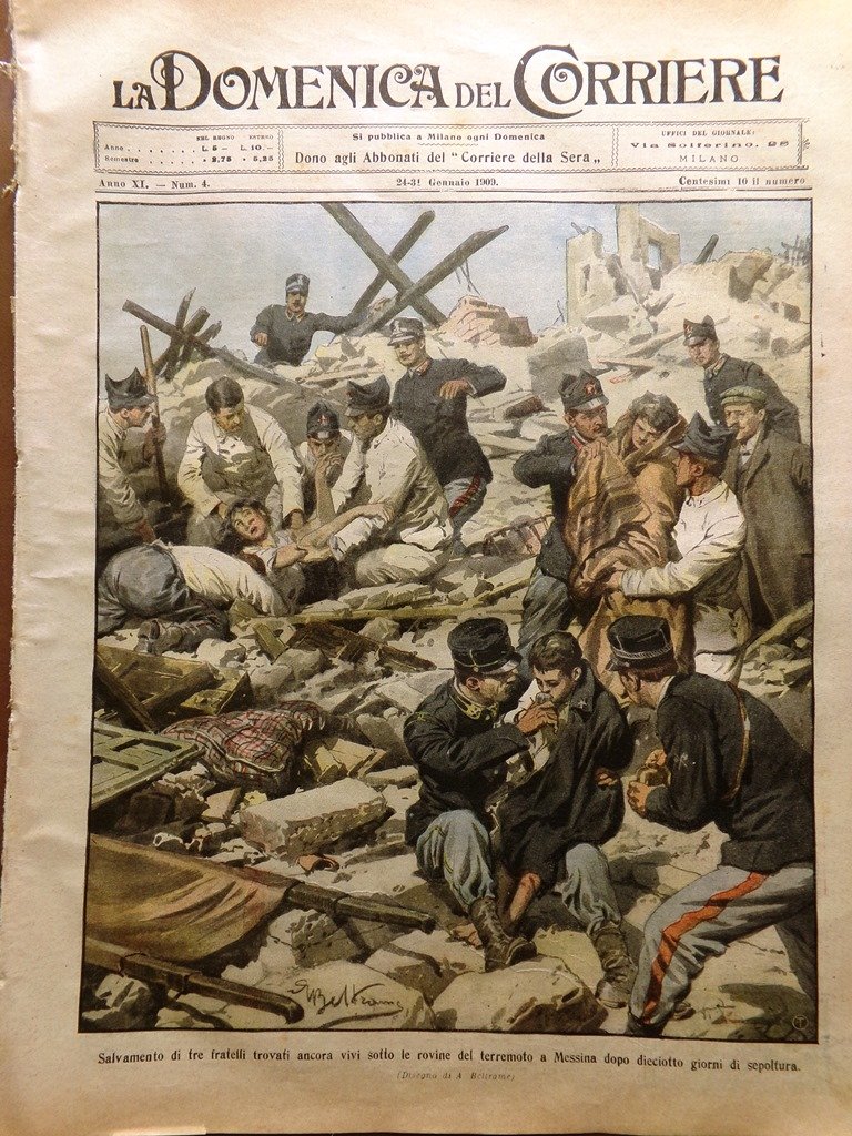La Domenica del Corriere 24 Gennaio 1909 Terremoto Calabria Sicilia Alfani Palmi