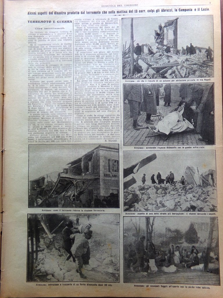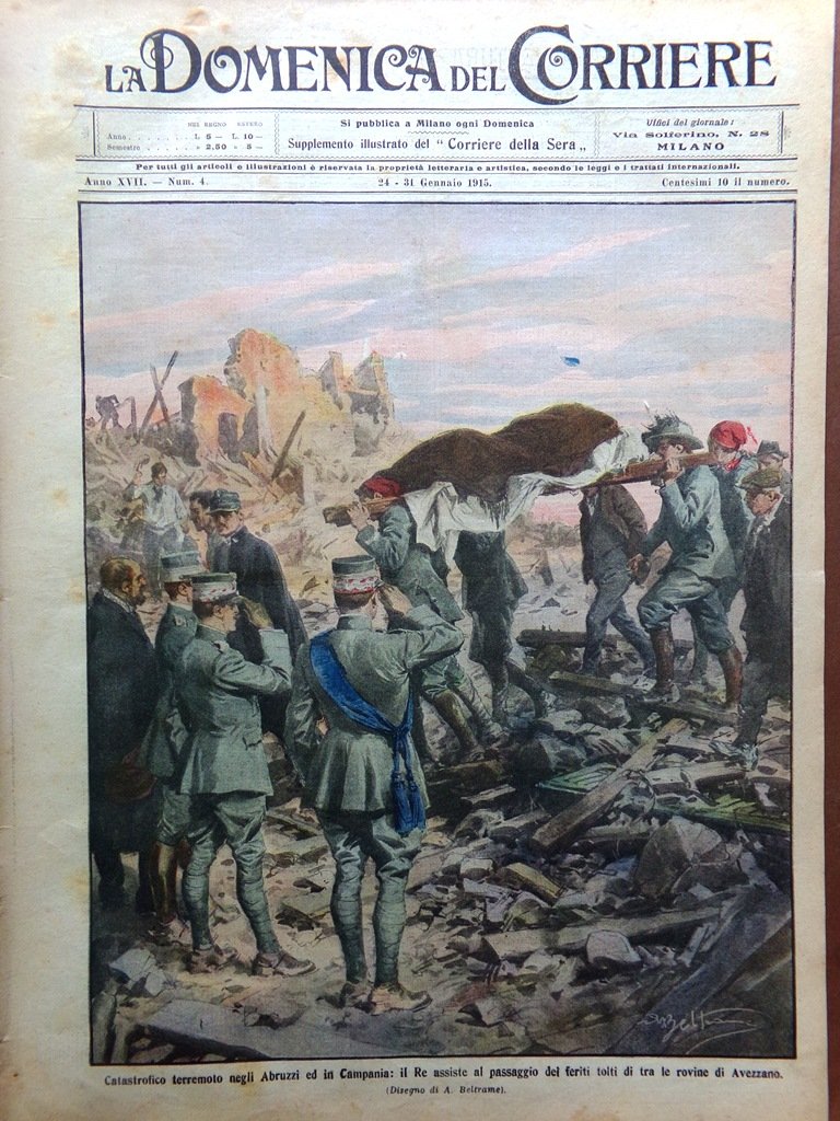 La Domenica del Corriere 24 Gennaio 1915 WW1 Terremoto Marsica Avezzano Casaloni