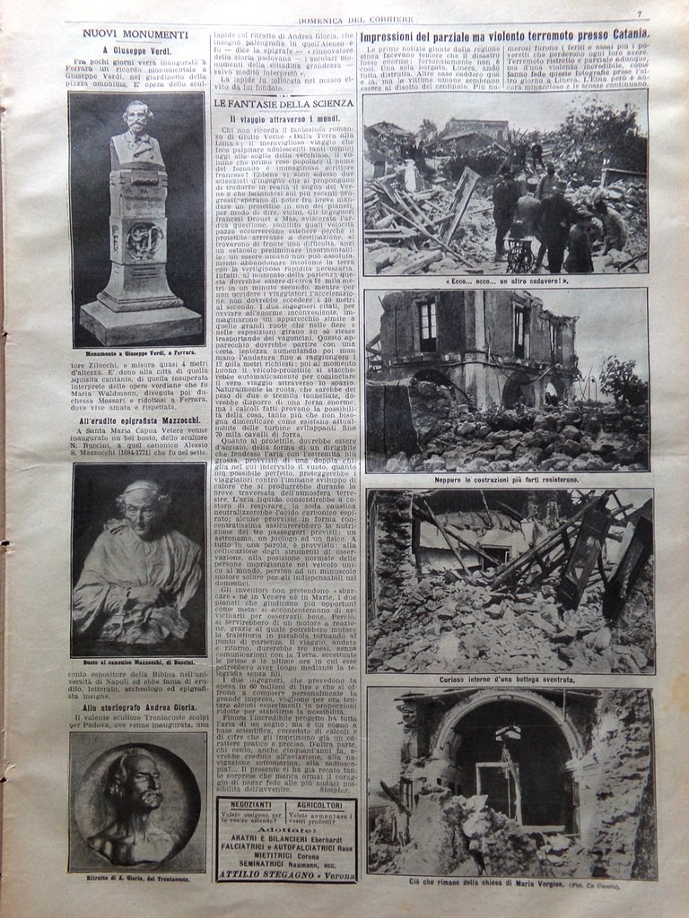 La Domenica del Corriere 24 Maggio 1914 Terremoto Catania Molfetta Emigrazione