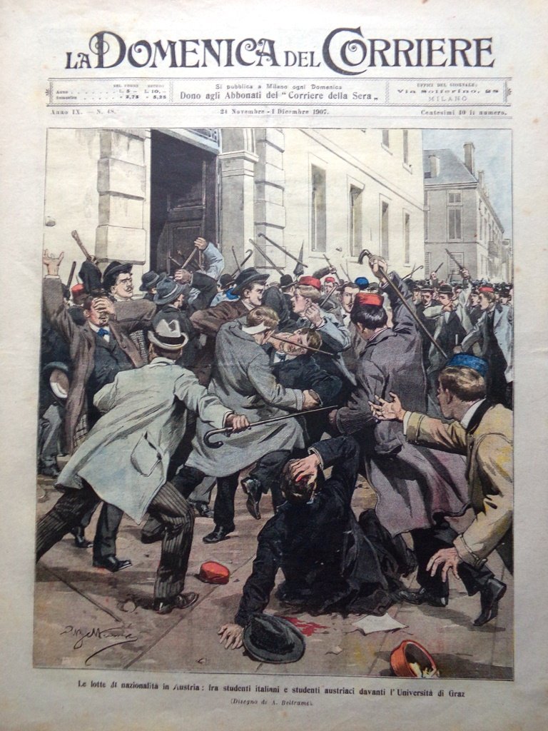 Le lotte di nazionalità in Austria: fra studenti italiani e studenti austriaci davanti l'università di Graz (Achille Beltrame)