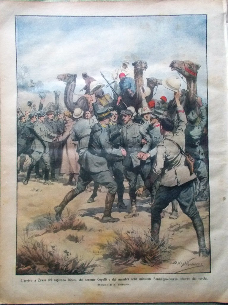 L'arrivo a Zavia del capitano Moizo, del tenente Copelli e dei membri della missione Sanfilippo-Sforza, liberati dai turchi (Achille Beltrame)