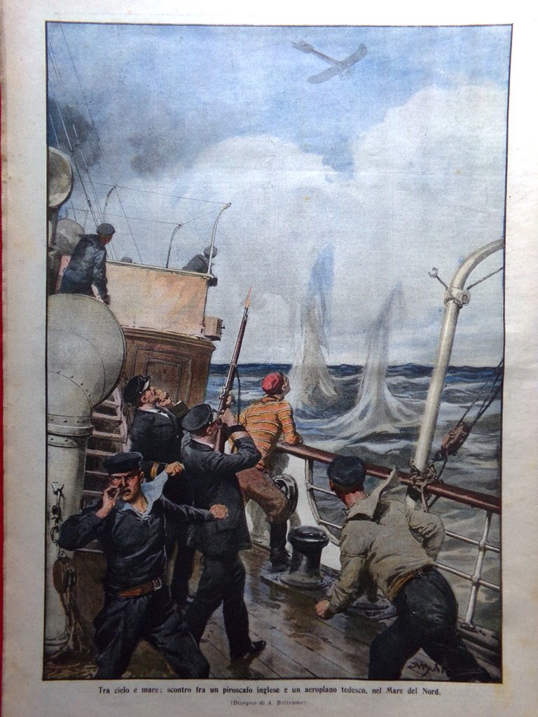 LA DOMENICA DEL CORRIERE Rivista Originale del 25 Aprile 1915 Anno 17 nr. 17 pagine: 16 dimensioni: 38 x 28 cm IN PRIMA PAGINA: Il nemico che viene dall'aria: un aeroplano francese lancia cinque bombe sul gran quartiere generale a Mezières-Charleville (Achille Beltrame) NELL'ULTIMA PAGINA: Tra cielo e mare: scontro fra un piroscafo inglese e un aeroplano tedesco, nel Mare del Nord (Achille Beltrame) ALL'INTERNO: Le marce ciclo-militari di preparazione intorno a Milano I maori in Egitto "Le nozze dei centauri" di Sem Benelli al Carignano di Torino I funerali della vedova di Quintino Sella Città e bandiere decorate in Francia Dai Carpazi alla Woevre La consegna della bandiera al reggimento Saluzzo Nuove costruzioni: Roma, via Ostiense, Bari per la linea Bari-Matera CONDIZIONI DELLA RIVISTA: BUONE, NORMALI SEGNI DEL TEMPO, SOVRACOPERTINE MANCANTI NOTE PARTICOLARI: PICCOLISSIMI STRAPPETTI NEI BORDI DI ALCUNE PAGINE