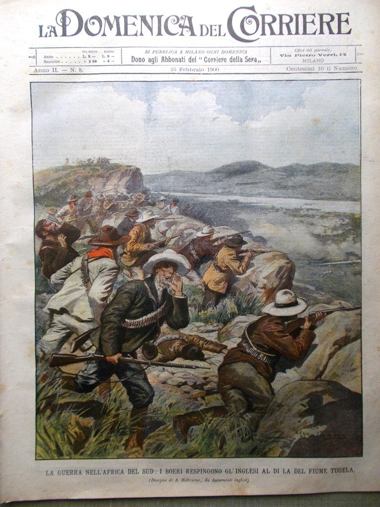 La guerra nell' Africa del sud: i Boeri respingono gli inglesi al di la del fiume Tugela (Achille Beltrame)