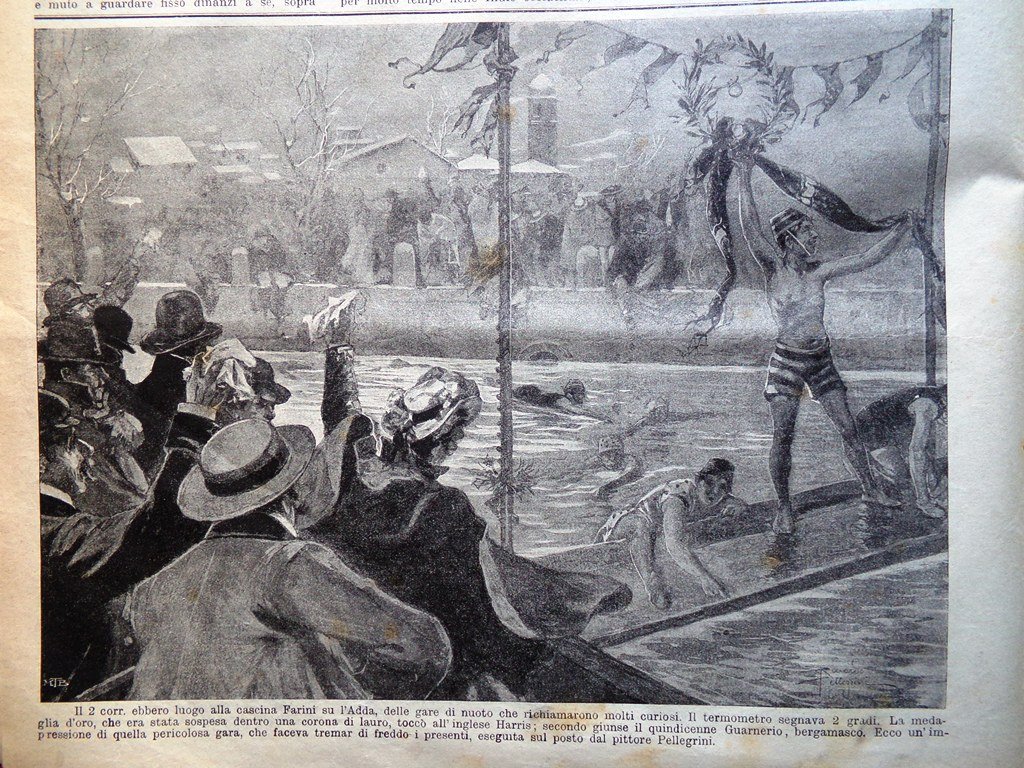Gare di nuoto nella cascina Farini sull'Adda