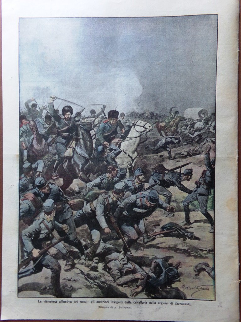 LA DOMENICA DEL CORRIERE Rivista Originale del 25 Giugno 1916 Anno 18 nr. 26 pagine: 16 dimensioni: 38 x 28 cm IN PRIMA PAGINA: Sul monte Lemerle. La brigata Forl contrattacca e insegue il nemico con la baionetta alle reni (Achille Beltrame) NELL'ULTIMA PAGINA: La vittoriosa offensiva dei russi: gli austriaci inseguiti dalla cavalleria nella regione di Czernowitz (Achille Beltrame) ALL'INTERNO: La psico-fisiologia dell'aviatore Francesco Giuseppe disegnatore Decorati al valore Gli effetti di un 420 a Serravalle La consegna della croce di guerra alla Regina Elisabetta del Belgio Il ministero nazionale La lotta in Val d'Astico Una pubblicazione della Croce Rossa: "Santa Milizia" CONDIZIONI DELLA RIVISTA: MOLTO BUONE, NORMALI SEGNI DEL TEMPO, SOVRACOPERTINE MANCANTI NOTE PARTICOLARI: NESSUNA